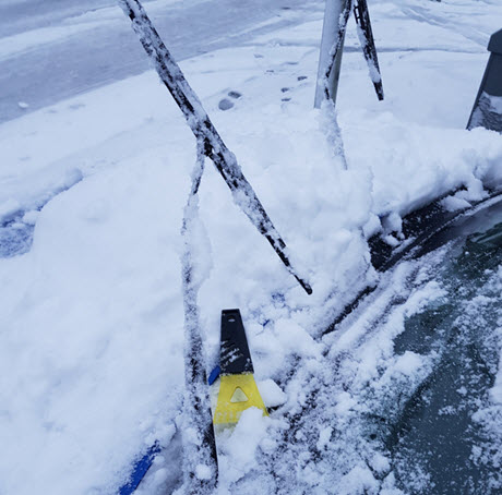 Goed zicht is heel belangrijk als je wordt overvallen door een sneeuwbui of hagel. Check daarom je ruitenwisserbladen op scheurtjes. Dit doe je door de ruitenwisserbladen omhoog te tillen en aan het uiteinde van het rubber te voelen. Zit er een scheurtje in, dan moeten ze vervangen worden.