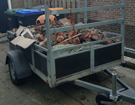 Ga dus niet achter een volle aanhanger met aanhangernet rijden. Dit is wachten op ellende.