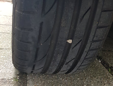 Als met hoge snelheid dit soort steentjes op je autoruit komen ben je verder van huis.