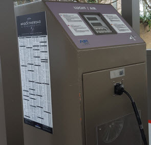 Bandenspanningstabel bij benzinepomp: kies de juiste spanning.