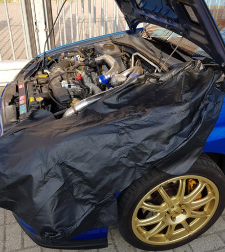 Met name bij klussen direct onder te motorkap, in de motorruimte, liggen krassen op de loer. Er zijn spatbordhoezen met en zonder uitsnijding voor de wielkast.