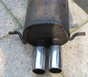 Fabrieks af wordt een standaard uitlaat flink 'geknepen'. Doel is het geluid maximaal te dempen en uitlaatgassen te zuiveren.